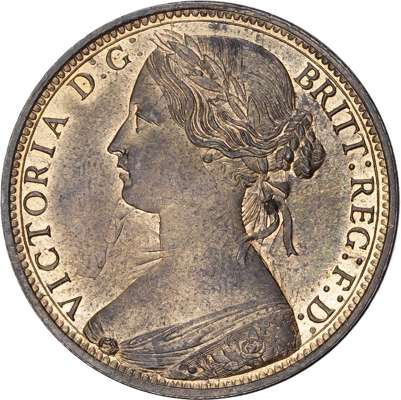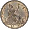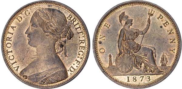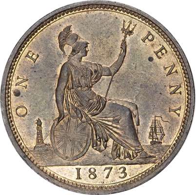 Victoria (1837-1901), Bronze Penny, 1873, Tooth Border, young bust left, reverse Britannia std. right, with shield and trident (S.3954; BMC.1689; F.64 dies 6 + G; Gouby BP1873A J+g). Uncirculated with good lustre on both sides.