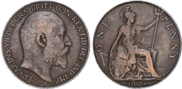 Edward VII (1901-1910), Penny, 1908, F164A dies 1*+C