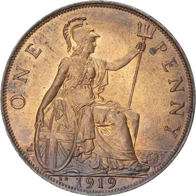 George V (1910-1936), Penny, 1919, KN, bare head left, rev. Britannia seated right, with shield and trident, (S.4053; F187 dies 2+B; BMC.2257) About uncirculated with good lustre on both sides.