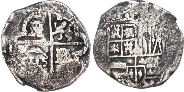 Bolivia, silver Cob of 8 Reales, c. 1598-1621, most likely Potosi mint, 27.17g (KM 10). Fine.