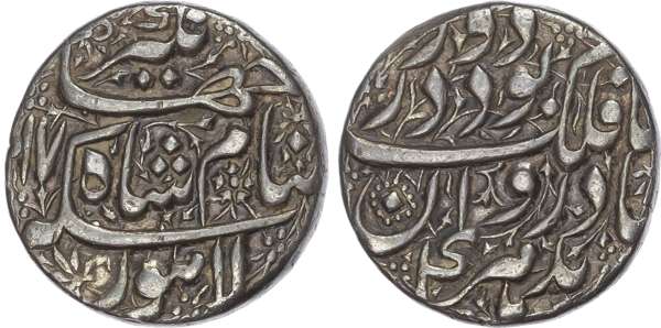 India, Mughal Empire, Jahangir (AH 1014-1037 / 1605-1627 AD), silver Sawai Rupee, Ta Falak couplet, AH 1017, Lahore, 14.14g (KM 158.5). About Extremely Fine, shroff mark to the edge. Extremely rare.