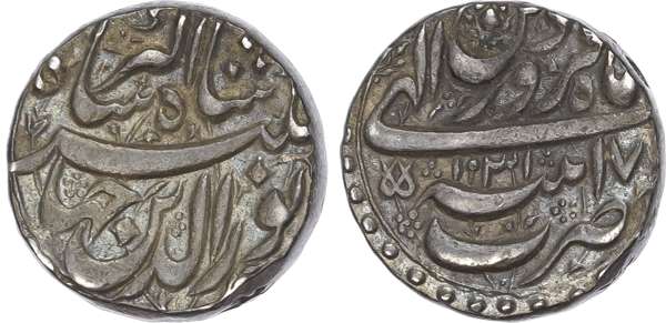 India, Mughal Empire, Jahangir (AH 1014-1037 / 1605-1627 AD), silver Rupee, AH 1031, RY 17, Patna 11.45g (KM 145.12). Extremely Fine, rare. Test marks to the edge.