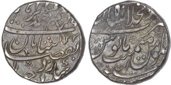 India, Mughal Empire, Muhammad Ibrahim (AH 1132-1133 / 1720 AD), silver Rupee, Ba Fazle Kareem couplet, AH 1133, Shahjahanabad, 11.41g (KM 426.1). Good Very Fine. Extremely rare, especially in this condition without test marks.