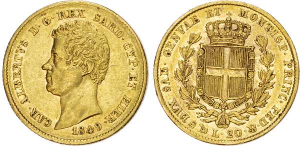 Italy, Carlo Alberto (1831-1849), gold 20 Lire, 1849