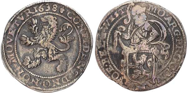 Netherlands, West Friesland, silver Lion Daalder, 1638, 27.06g (KM 14.3). Good Fine.