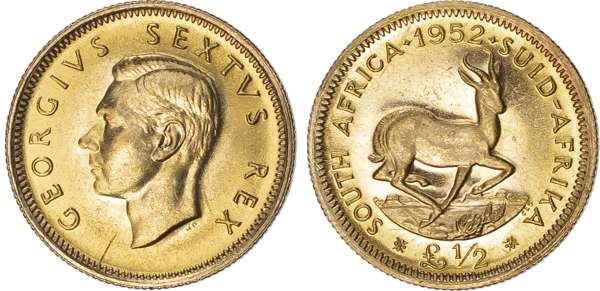South Africa, George VI (1936-1952), Proof Set of 11 coins, 1952, including: gold Pond and ½ Pond, silver Crown to Threepence, copper Penny to Farthing (KM PS24). Uncirculated, in the case of issue (11). Only 12,000 sets issued.