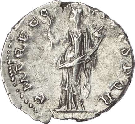 IMP TRAIANO AVG GER DAC PM TR P, laureate and draped bust of Trajan right. Rev. PM TR P COS VI S P Q R, Pax standing left, holding branch and cornucopiae. (RIC 343). About Extremely Fine.