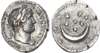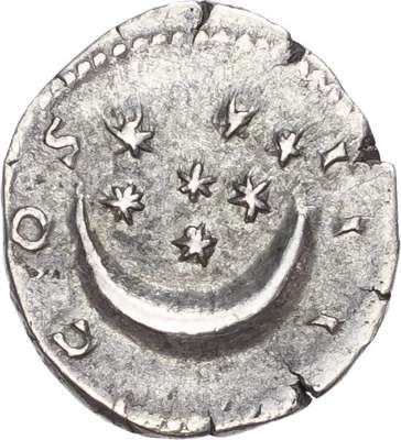 HADRIANVS AAVGVSTVS, laureate head of Hadrian right. Rev. COS III, crescent and seven stars. (RIC 202). Good Very Fine. Scarce.