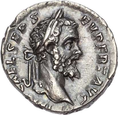 IMP CAE L SEP SEV PERT AVG, laureate head of Septimius Severus right. Rev. LEG II ITAL / TR P COS, legionary eagle between two standards. (RIC 6; RSC 261). Nearly Extremely Fine. Attractively toned and struck on good metal. A superb example of this popular type.