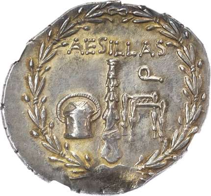 MAKEΔONΩN, head of Alexander the Great facing right, wearing the horn of Ammon. AESILLAS, vertical club flanked with money chest and chair, all within a laurel wreath. (HGC 3, 1110). About Extremely Fine for issue. ‘Edge Scuff’ ‘Brushed’.