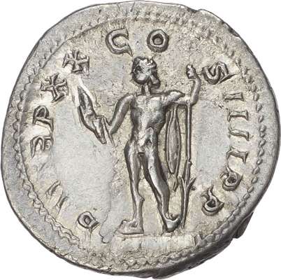 ANTONINVS PIVS AVG GERM, radiate and draped bust of Caracalla right. Rev. PM TR P XX COS IIII P P, Jupiter standing left, holding sceptre and thunderbolt. (RIC 284a). Nearly Extremely Fine.