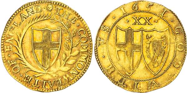 Commonwealth (1649-1660), AV Unite, 1651, Tower (London) mint, mm. Sun.
