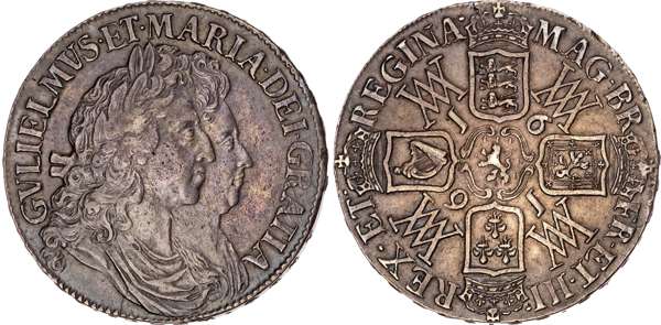 William and Mary (1689-1694), Crown, 1691, TERTIO, I over E in GVLIELMVS.