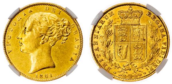 Victoria (1837-1901), AV Sovereign, 1861, C/inverted C.
