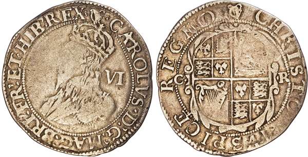 Charles I (1625-1649), AR Sixpence, Group D, type 3, Tower mint (under King), mm. harp (1632-3).