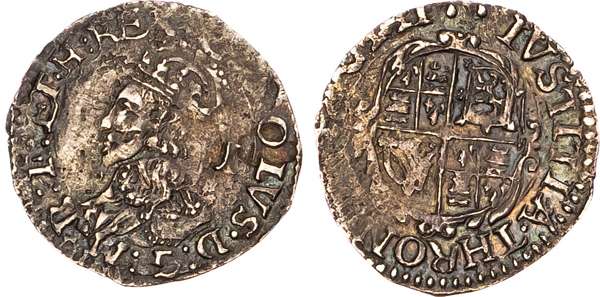 Charles I (1625-1649), AR Penny, Group E, type 3a3, Tower mint (under King), mm. two pellets.
