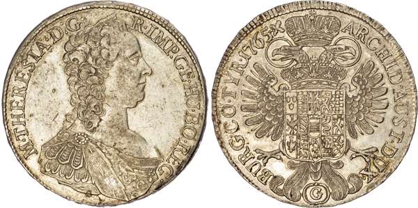 Austria, Maria Theresa (1740-1780), silver Taler, 1765 G, Günzburg, 28.08g (Dav. 1147; KM 15). Good Very Fine, cleaned. A scarce two-year type.