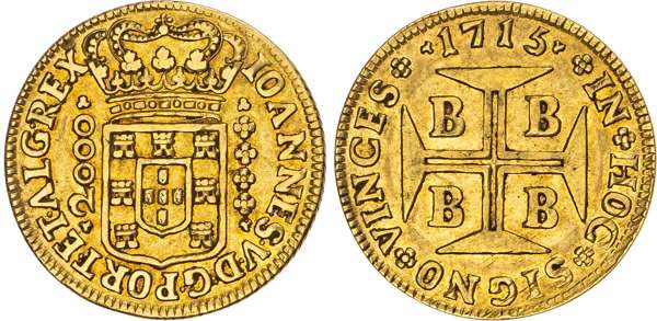 Brazil, João V (1706-1750), gold 2000 Reis, 1715