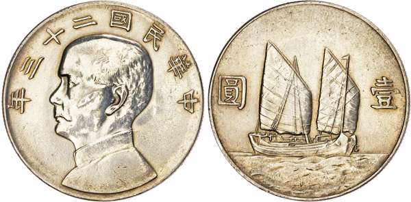 China, Republic, Sun Yat-Sen, silver Junk Dollar
