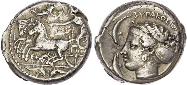 Sicily, Syracuse, Second Democracy (466-405 BC) AR Tetradrachm, obverse and reverse signed by Eumenos,