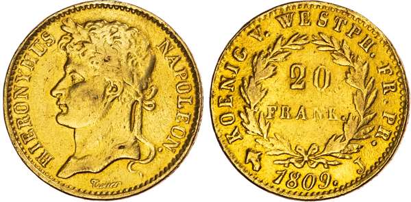 Germany, Westphalia, Hieronymus Napoleon (1807-1813), gold 20 Franken