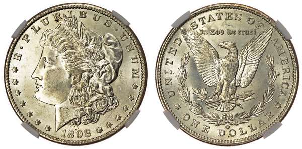 USA, silver Morgan Dollar, 1898, New Orleans, 26.75g (KM 110). In NGC holder graded MS 64 (6029119-016).