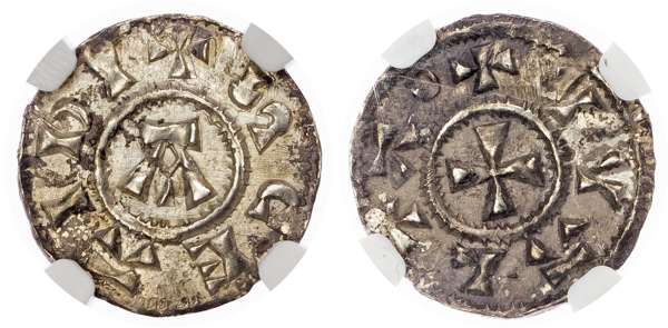 +SC EAIDI, large A, Rev. +VVALTA, large cross pattée, 1.20g/11h. (N. 483; S. 960). Encapsulated and graded by NGC as MS 62.