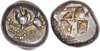 Griffin leaping left, with both forepaws raised, hound below. Rev. Quadripartite incuse square. (May, Abdera, 5; CN type 4397). Good Very Fine. Struck somewhat off-centre. Extremely rare. No others on CoinArchives. Superior to the specimen in the Corpus Nummorum.