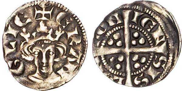 E R ANGLIE, crowned bust facing, Rev. LONDONIENSIS, long cross pattée, trefoil of pellets in each quarter, 0.31g/11h. (N. 1053/2; S. 1445A). Good Very Fine for issue.