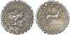 C. Malleolus C. f. (118 BC) AR Denarius Serratus, Narbo, 3.95g. C•MALLE•C•F, helmeted head of Roma facing right, X (mark of value) behind. Rev. Gallic warrior (Bituitus?), holding shield, carnyx and reins, hurling spear and driving biga right, L•LIC•C•N•DOM in exergue. (Crawford 282/3; Sydenham 524). Good Very Fine.