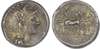 Ap. Claudius Pulcher, T. Mallius and Q. Urbinus (111-110 BC) AR Denarius, Rome, 4.11g. Helmeted head of Roma facing right,