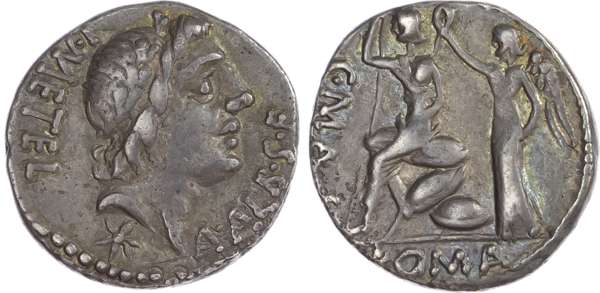 C. Publicius Malleolus, A Postumius Sp. f. Albinus and L. Metellus (96 BC) AR Denarius, Rome, 3.95g. L METEL A ALB S F,