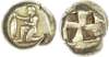 Mysia, Kyzikos (c. 550‑450 BC) EL Stater, 16.11g. Nude male kneeling left, holding tunny fish. Rev. Quadripartite incuse square. (Von Fritze I, 112; Greenwell 86; Boston 1487 - Warren 1502). Good Very Fine. Ex. CNG Electronic Auction 106 (13/09/2017) lot #310.