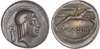 C. Calpurnius Piso Frugi (64 BC) AR Denarius, Rome, 3.78g. Laureate head of Apollo facing right, caduceus behind. Rev.