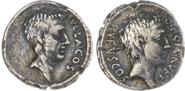 Q. Pompeius Rufus (54 BC) AR Denarius, mint of Rome, 3.65g. Q•POM•RVFI / RVFVS•COS, bare head of the consul Q. Pompeius Rufus facing right. Rev. SVLLA•COS, bare head of Sulla facing right. (Crawford 434/1; Sydenham 908). Fine. Numerous marks.