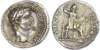 Tiberius (AD 14-37) AR Denarius, Lugdunum, c. AD 15-18, 3.82g. TI CAESAR DIVI AVG F AVGVSTVS, laureate head of Tiberius facing right. Rev. PONTIF MAXIM, Livia, as Pax, holding sceptre and branch, seated left on throne with ornate legs. (RIC 30; RSC 16a). Good Very Fine. Slightly buckled. Mount mark and solder on centre of reverse.