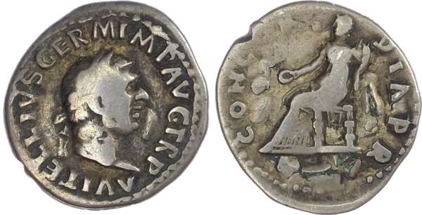 Vitellius (AD 69) AR Plated or ‘Fouree’ Denarius, Rome, 3.00g. A VITELLIVS GERM IMP AVG TR P, laureate head of Vitellius