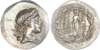 Ionia, Magnesia ad Meandrum (c. 150-140 BC) AR Tetradrachm, Stephanophoric type, Pausias, son of Pausias, magistrate, 16.86g. Diademed and draped bust of Artemis facing right, with bow and quiver over shoulder. Rev. ΠAYΣANIAΣ / ΠAYΣANIOY, Apollo Delphis standing left, resting on tall tripod, holding branch tied with fillet, meander pattern below, all within a laurel wreath. (SNG Von Aulock 7922; SNG Copenhagen 844; Jameson 1504). Extremely Fine or better. Well‑centred and well‑struck. High relief portrait of fine style. Ex. CNG Electronic Auction 436 (23/01/2019) lot #218.