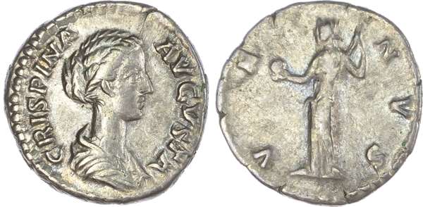 Crispina (AD 178-182) AR Denarius, Rome, 2.93g. CRISPINA AVGVSTA, draped bust of Crispina facing right. Rev. VENVS, Venus