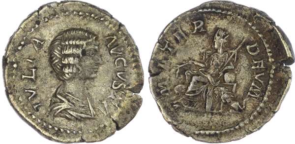 Julia Domna (AD 193-217) AR Denarius, Rome, AD 205, 3.25g. IVLIA AVGVSTA, draped bust of Julia Domna facing right. Rev.