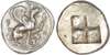 Ionia, Teos (c. 440‑420 BC) AR Stater, 12.11g. Griffin with curved wings standing right, raising forepaw. Rev. Quadripartite
