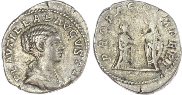 Plautilla (AD 202-205) AR Denarius, Rome, AD 202, 3.33g. PLAVTILLAE AVGVSTAE, draped bust of Plautilla facing right. Rev.
