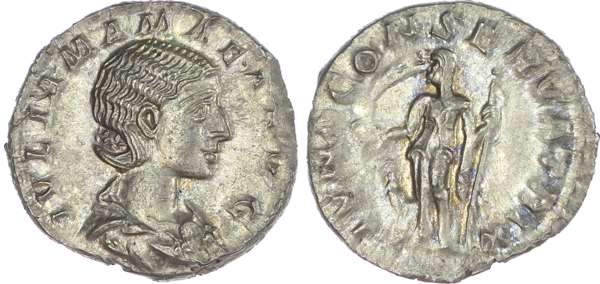 Julia Mamaea (AD 222-235) AR Denarius, Rome, 2.61g. IVLIA MAMAEA AVG, draped bust of Julia Mamaea facing right. Rev. IVNO