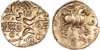 Trinovantes and Catuvellauni, Tasciovanus (c. 20 BC-AD 10) AV Stater, 5.45g. Two crossed wreaths, ends terminating in pellets-in-annulets, with back-to-back crescents in centre. Rev. [T]-A-S-C-I, warrior on horseback right, holding carnyx, wheel in upper right field, pellet‑in‑annulet in exergue. (ABC 2565; VA 1732-5). Good Very Fine.