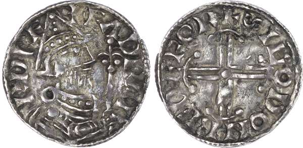 Edward the Confessor (1042-66) Penny, Pointed Helmet type (1053-1056) muled with a Hammer Cross type reverse (1059-1062),