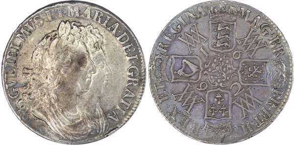 William and Mary (1688-1694), Crown, 1692 QVARTO, 'Large 2', conjoined laureate and draped busts right, reverse crowned