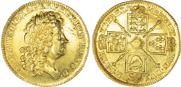 George I (1714‑27), Guinea, 1714 ‘Prince Elector’ type, first laureate head right, thick toothed border both sides, legend commences from bottom left GEORGIVS DG MAG BR FR ET HIB REX F.D. Rev, first reverse with Prince Elector titles, crowned cruciform shields, including the Hanoverian coat of arms, emblematic sceptres in angles, garter star struck in centre, date between either side of top crown, legend surrounding BRVN ET LVN DVX SRIATH ET PR EL (S.3628; Schneider 544; MCE 245). Beautiful rich dark amber toning with hues of light yellow and hints of underlying mint red lustre. A superb example of the rare one year only type. Portrait detailed and pleasing with the usual weakness in the curls, synonymous for the type. Minimal surface markings, mild bagmarks to the right of bust. Reverse, mirrored and prooflike with the faintest of markings, a touch of flecking. Lustrous, extremely fine or better.