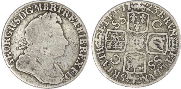 George I (1714-27), Shilling, 1723 South Sea Company, Date at the French arms variety, first laureate and draped bust right,