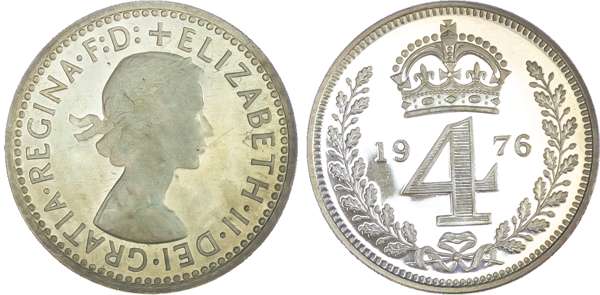 Elizabeth II (1952-2022), Maundy set, 1976, young laureate head of Queen right, legend and beaded border surrounding, +ELIZABETH II DEI GRATIA REGINA FD. Rev, crowned mark of value with date either side all within oak wreath (MS.1976 Decimals Guide p.134). Even tone, lustrous fields. Retaining much of its underlying mint brilliance with hues of gold, much as struck with box. The 1976 Maundy service was held at Hereford Cathedral.