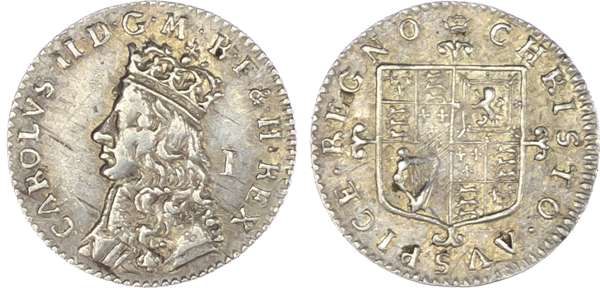 Charles II (1660-85), milled undated Maundy Set, Fourpence, Threepence, Twopence and Penny, crowned bust with falling lace collar left, value behind, legend surrounds CAROLVS II DG MBF & H REX. Rev, square topped shield with long cross, reads CHRISTO AVSPICE REGNO (S.3391; Bull.590; ESC.2365). Generally good fine, the Penny stronger. Second Milled Issue: Type C, sets of the four denominations usually assembled by collectors. Featuring interlocking C’s on the reverse to denote the various nominal values. See Bull, p.89 ‘English Silver Coinage.’